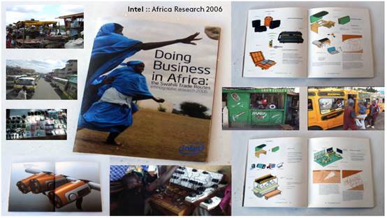 1. 1. One of the most interesting projects I’ve been fortunate to work on was an extensive study for Intel utilizing the Design Thinking process for the brief –“How Can Technology Enable Commerce in East Africa?” My team spent the next two years conducting research in East Africa in order to generate concepts for over a hundred different kinds of products, systems and services focused on a variety of domains, including health care, transportation, education, and micro-business. The resulting study and documentation was then provided to Intel partners for implementation.